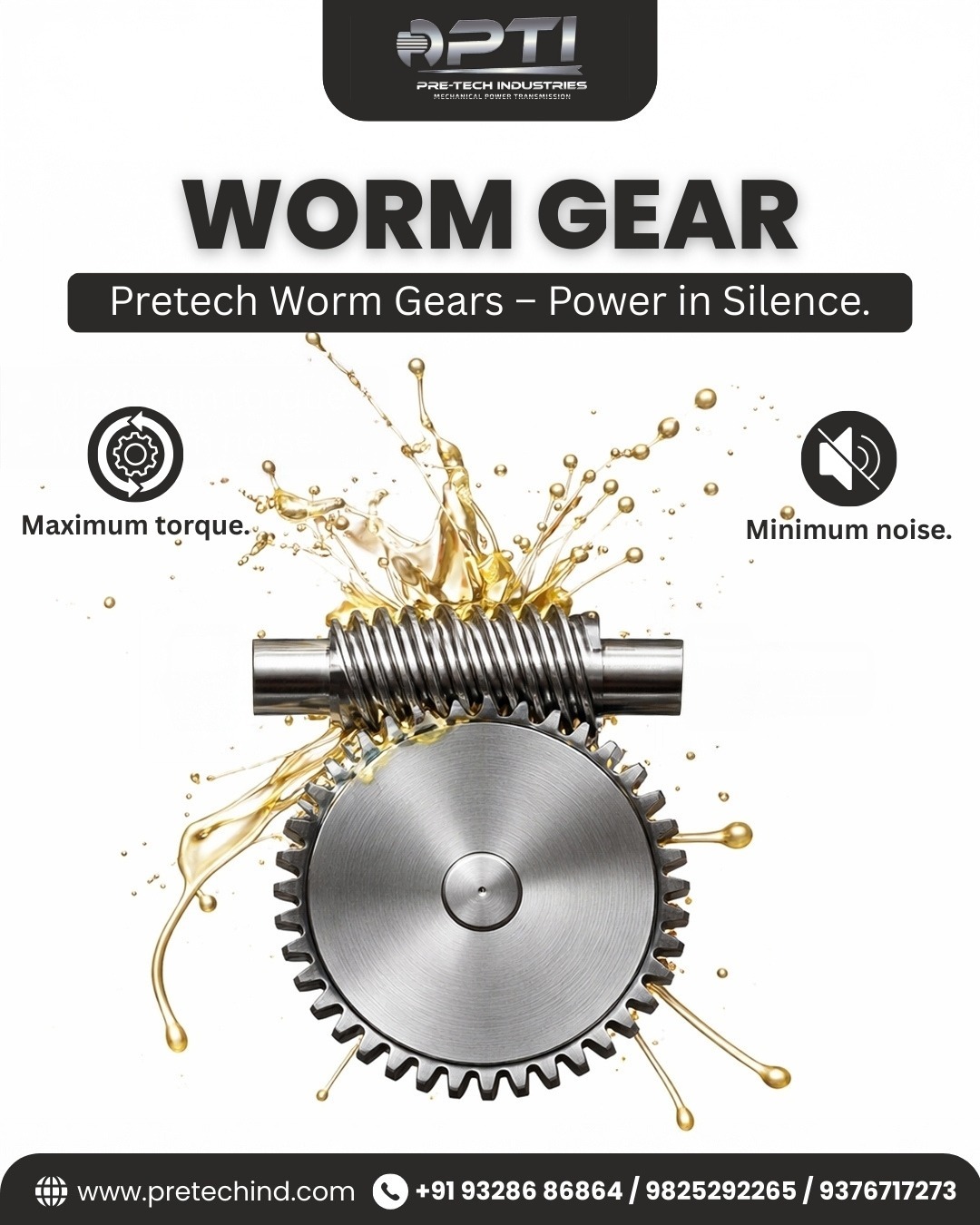 Pre-Tech Industries is a trusted Worm Gear Manufacturer in Ahmedabad, delivering high-performance power transmission solutions designed for compact installation, high torque output, and smooth operation. Our worm gears are precision-engineered systems consisting of a hardened steel worm (screw) meshing with a bronze or brass worm wheel, enabling efficient power transfer between perpendicular shafts with excellent speed reduction. As a leading Worm Gear Supplier in Gujarat and Distributor in India, we offer worm gear drives capable of achieving high reduction ratios such as 50:1 and 100:1 within a compact footprint. One of the key advantages of worm gearing is its self-locking feature, which prevents reverse motion, making it ideal for safety-critical applications. These systems also provide quiet, vibration-free performance, ensuring reliable operation in continuous-duty environments. Our worm gears are used in elevators, conveyors, and industrial machinery. Pre-Tech Industries is also a trusted Worm Gear Dealer in India, providing reliable supply and nationwide support. Manufactured using premium-grade materials and strict quality standards, Pre-Tech Industries worm gears deliver durability, efficiency, and long service life, even under demanding operating conditions. Contact Pre-Tech Industries today for high-quality Worm Gear solutions tailored to your industrial and mechanical power transmission needs.